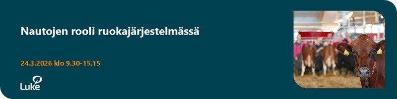 Mikä on nautojen rooli ruokajärjestelmässä? Naudat ja nurmet ovat tärkeitä suomalaiselle ruoantuotannolle ja ruoantuotannon omavaraisuudelle sekä huoltovarmuudelle. Nautakarjataloudella on monia myönteisiä vaikutuksia myös mm. maaseudun elinvoimaan ja ekosysteemipalveluihin, kuten luonnon monimuotoisuuteen ja ravinteiden kiertoon. Suomen maataloustuotannon arvosta 40 prosenttia tuotetaan lypsykarjatiloilla ja muilla nautakarjatiloilla, joten nautasektorin kilpailukyvyn säilyttäminen ja alan kehittäminen ovat tärkeitä tavoitteita. Miten voisimme vahvistaa maitoalan muutosjoustavuutta, eli kykyä kestää häiriöitä, toipua kriiseistä ja uudistua muuttuvassa toimintaympäristössä? Tervetuloa Hämeen ammattikorkeakoulun (HAMK) ja Luonnonvarakeskuksen (Luke) järjestämään tapahtumaan kuulemaan ja keskustelemaan!