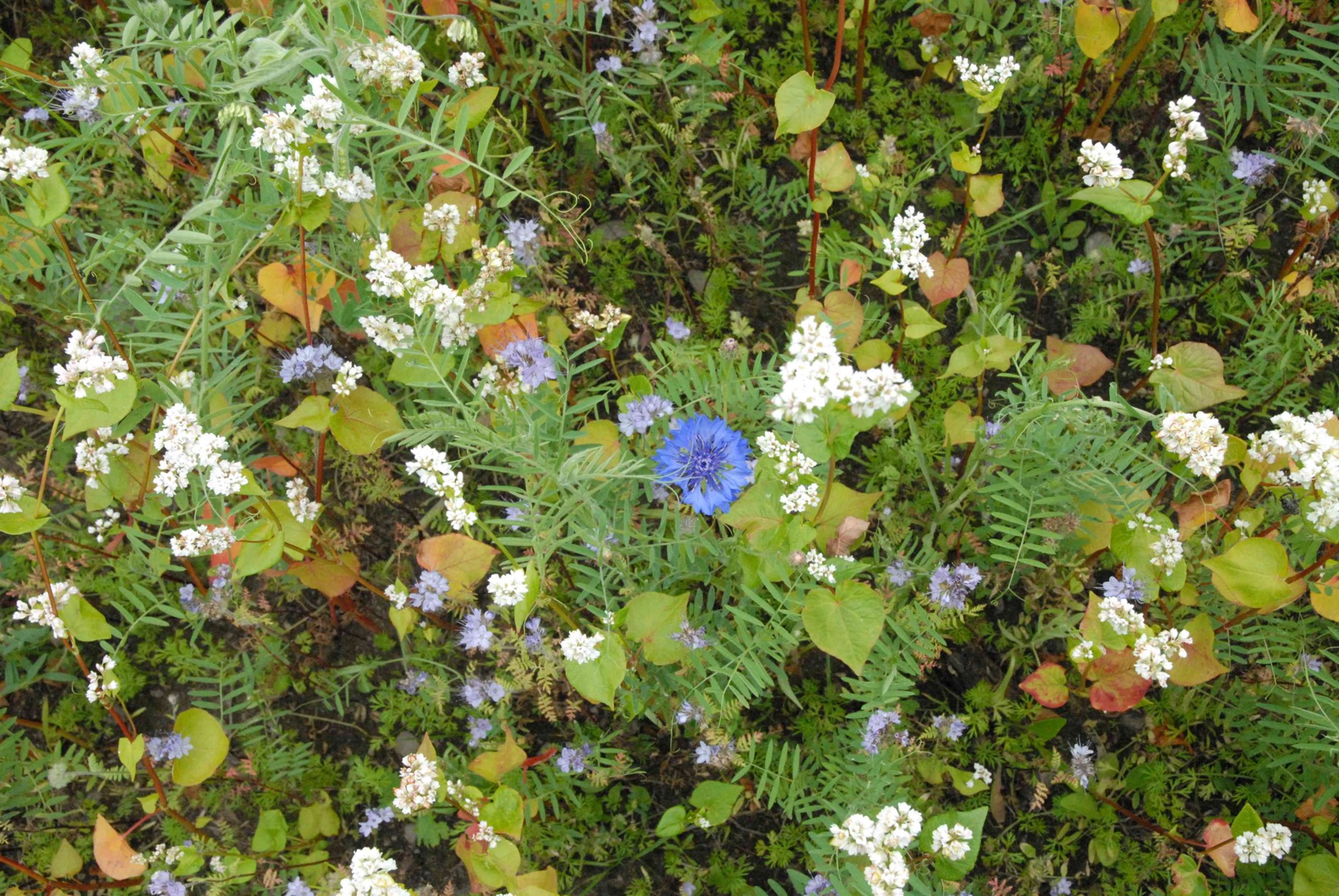 monimuotoisuuspellon kasveja, ruiskaunokkia, tattaria, ruisvirnaa